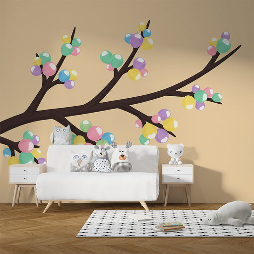 Показване на всички подробностиPapier peint chambre bébé | Branche colorée avec des boules pastel