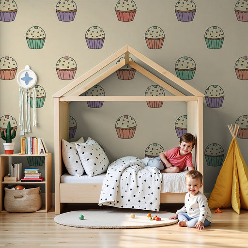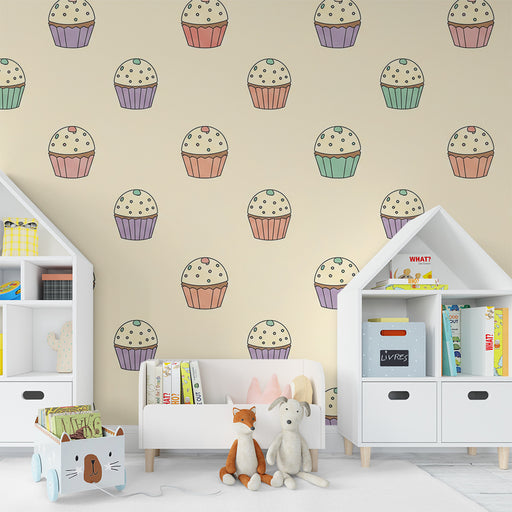 KidsWallAjoutez une touche sucrée à la chambre de votre bébé avec ce papier peint pour bébé orné de délicieux gâteaux. Chaque cupcake, délicatement illustr...