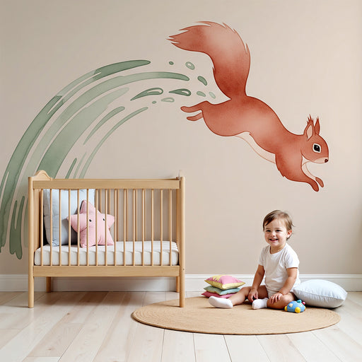 Илюстрираната стена не е просто фон: тя става повърхност за разказване на история. Детето бързо измисля правила: поляната става космическа писта, ракетата служи за начало на буквения лов, лисицата води вечерния ритуал. Поставете тематични кошници (горски животни, астронавти, изследователски инструменти) близо до тях, за да нахраните тези сценарии, без да разпръсвате стаята.
