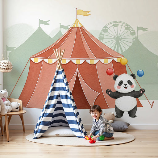KidsWallПревърнете стаята на вашето дете в истинско представление с този тапет за деца, вдъхновен от фееричния свят на цирка. Под цветен шато, забавен кате...