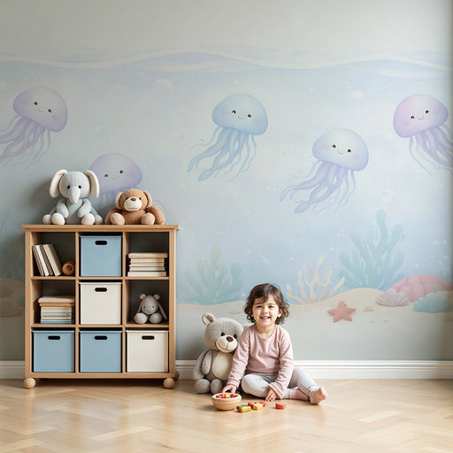 KidsWallВнесете мека и успокояваща морска атмосфера в стаята на вашето бебе с нашия тапет "усмихнати медузи" в пастелни цветове. С красиви медузи в нежни п...