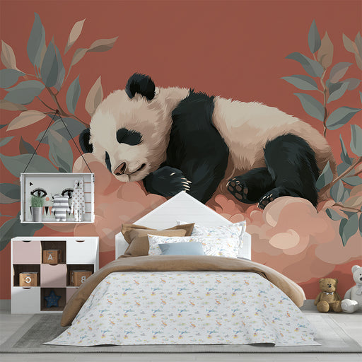 KidsWallСъздайте уютен кокон за вашия бебе с тапет за детска стая, представящ привлекателен спящ слон. Вграден сред деликатни листа и меки облаци, този сло...