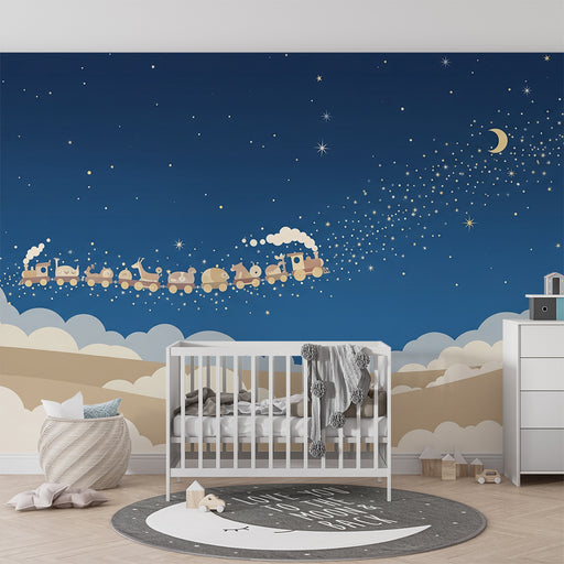 KidsWallПревърнете стаята на вашия бебе в магически свят с тази тапет за бебе, изобразяващ очарователен влак, плаващ през звездното небе. Светещата луна и ...