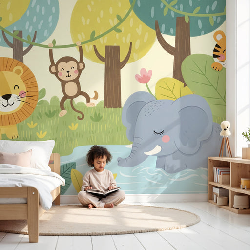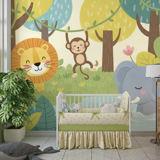 Подарете на вашето дете стимулиращ и очарователен свят с този тапет с животни от джунглата. Идеален за вдъхновяваща декорация, той се съчетава перфектно с мебели от естествено дърво и аксесоари в меки тонове. С Kids Wall, преобразете стаята на вашето дете в истинска тропическа експедиция, където всеки ден е ново приключение за изследване.