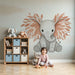 Превърнете стаята на вашия бебе в уютно пространство с тази тапет за бебето, изобразяващ очарователен слон, заобиколен от цветни листа. С големите си уши, украсени с меко листва, този слон предизвиква нежност и невинност, придавайки нежен и успокояващ акцент на пространството.
