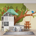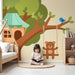 Papier peint chambre bébé | Ourson joyeux et cabane dans un arbre
