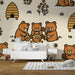 Papier peint chambre bébé | Oursons joyeux autour d'une ruche avec des fleurs
