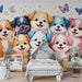 Тази тапет с очарователни кученца представя събрание от многоцветни кученца с пеперуди в мечтателна обстановка. Идеален за детска стая или игрална, той носи радост и нежност благодарение на своите ярки цветове и омайни мотиви.