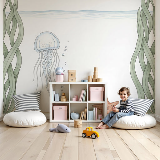 KidsWallПогребете вашето бебе в очарователен морски свят с тапет за детска стая. Представяйки дълбините на океана, този привлекателен декор предлага успоко...