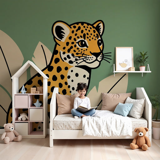 KidsWallДобавете допир на приключение в стаята на вашето дете с тази тапет за деца, изобразяващ очарователен леопард сред тропическо растителност. Леопардъ...
