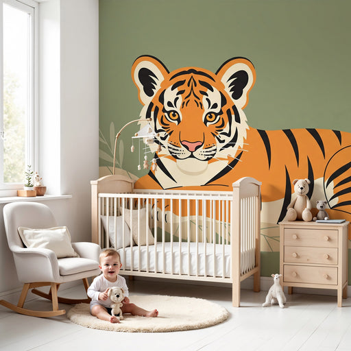 KidsWallПреобразете света на вашето дете с тази тапет за деца, изобразяващ сладък и любопитен тигър. Излизайки от плътната зеленина, този шаловлив котарак ...