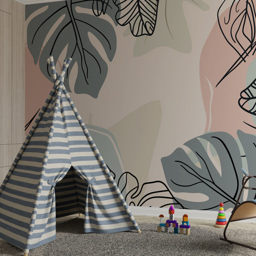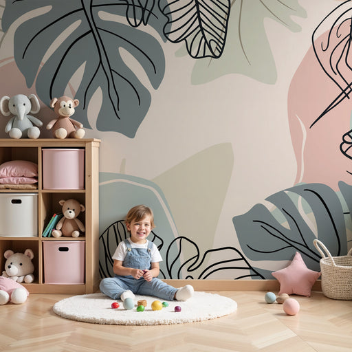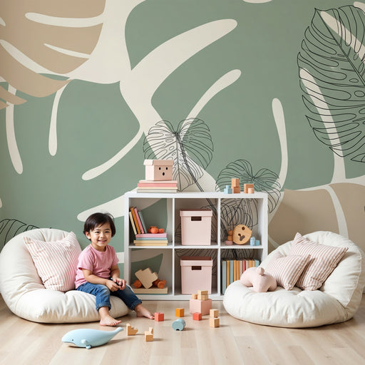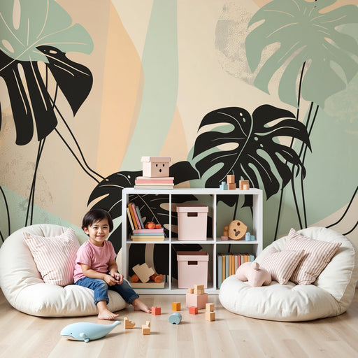 KidsWallПреобразете стаята на вашето дете с тази тапет за деца, където стилизирани листа на монстера разцъфтяват върху фон от успокояващи пастелни тонове. ...