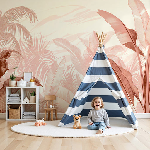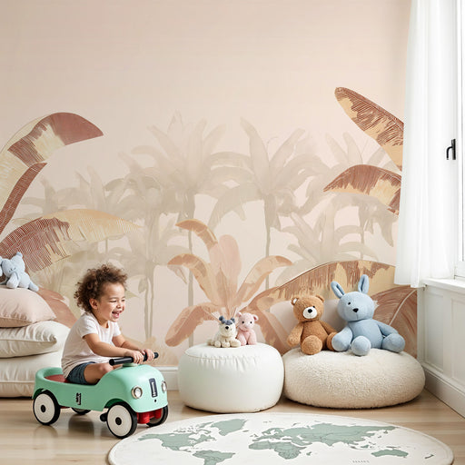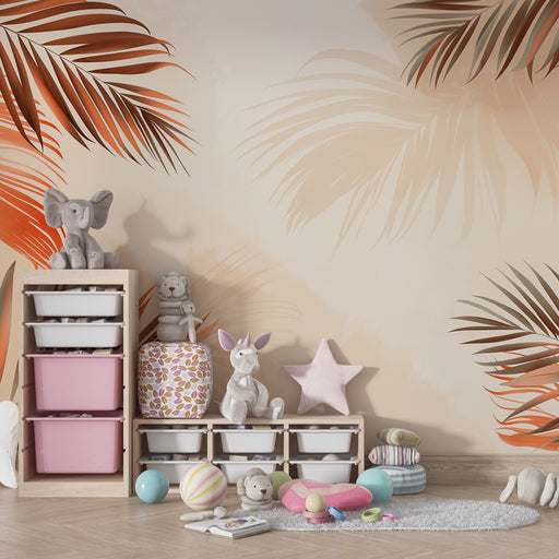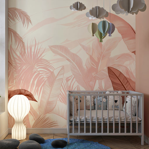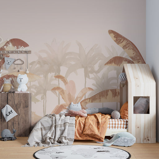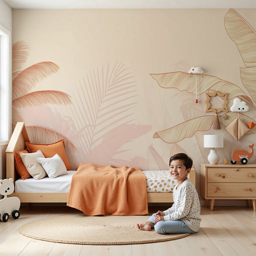 KidsWallПреустройте тропическата стая на вашето дете с този тапет за деца очарователен. Големите палмови листа, деликатно изобразени в розови и бежови нюан...