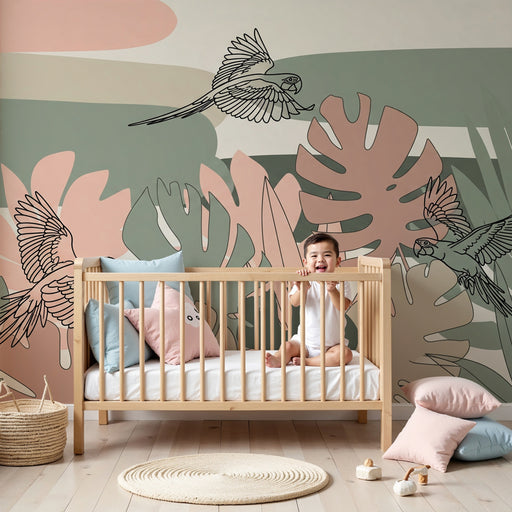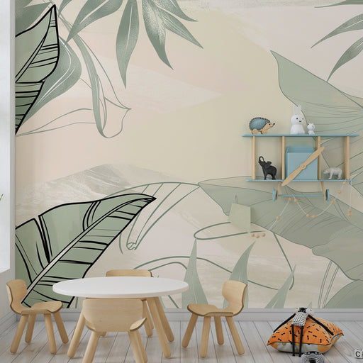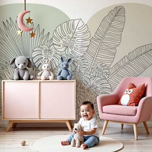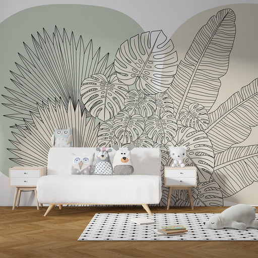 KidsWallПреобразете пространството на вашето дете с този модерен тапет, представящ стилизирани тропически листа. Деликатните мотиви на листата, комбинирани...