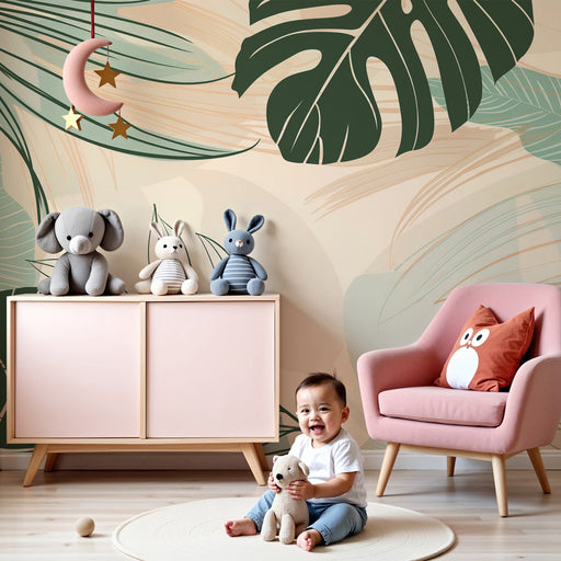 Показване на всички подробностиPapel de parede criança | Folhas tropicais monstera e ambiente relaxante