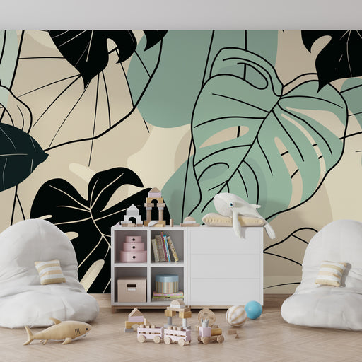 KidsWallДобавете екзотичност и модерност в стаята на вашето дете с този тапет за деца с дизайн, вдъхновен от природата. Елегантните тропически листа в черн...