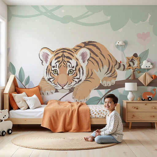 KidsWallПревърнете стаята на вашето дете в истински рай с този тапет за деца, който представя сладко младо тигърче, което се забавлява на клон. Със своя бл...