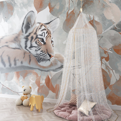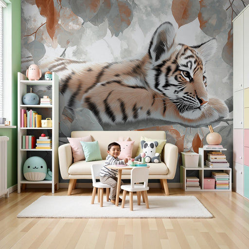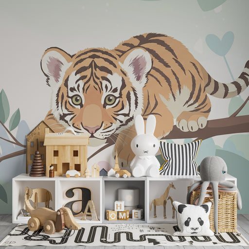 KidsWallПревърнете стаята на вашето дете в истински приют на природата с този тапет, изобразяващ млад тигър, спокойно протегнат върху клон. Заобиколен от н...