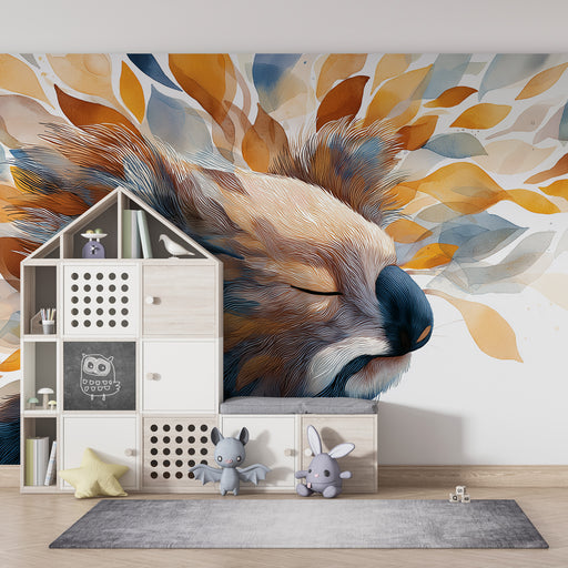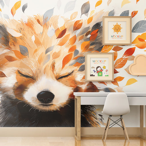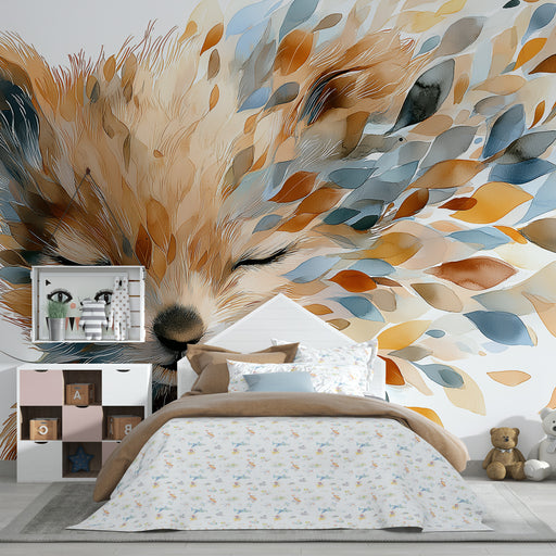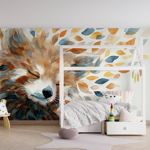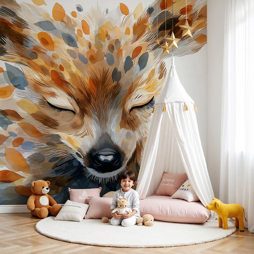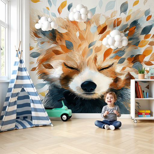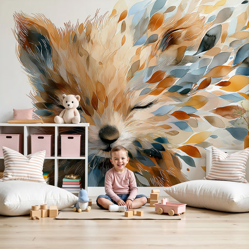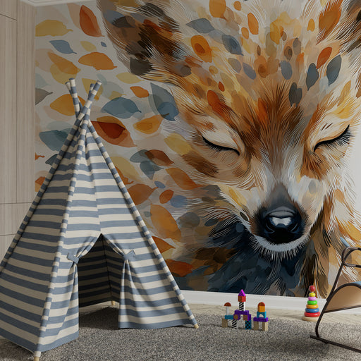 KidsWallДонесете допир на нежност и магия в стаята на вашето дете с този тапет за деца, изобразяващ спокоен лисица, заобиколен от листа в топли цветове. Съ...