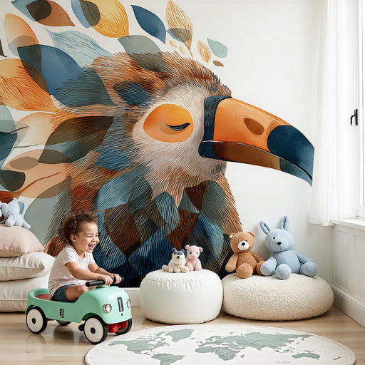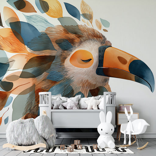 KidsWallПогледнете детето си в свят на спокойствие с тази тапет за деца, изобразяваща очарователна птица, заобиколена от вихър от цветни листа. Нежните нюа...
