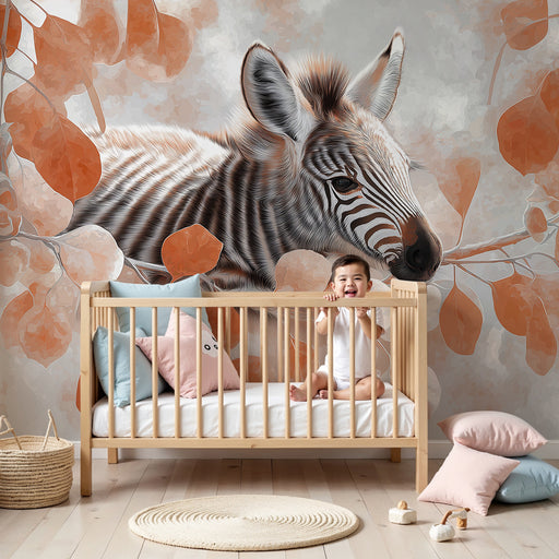 KidsWallПревърнете стаята на вашето дете в магическо пространство с тази тапет за деца, представящ сладък малък зебра, почиващ сред елегантно листо. Този д...