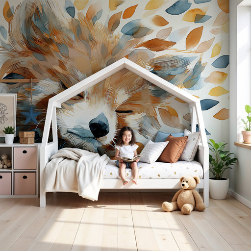 KidsWallДобавете малко магия в стаята на вашето дете с този тапет за деца, представящ очарователно лице на лисица, заобиколено от цветни листа. Захващащата...