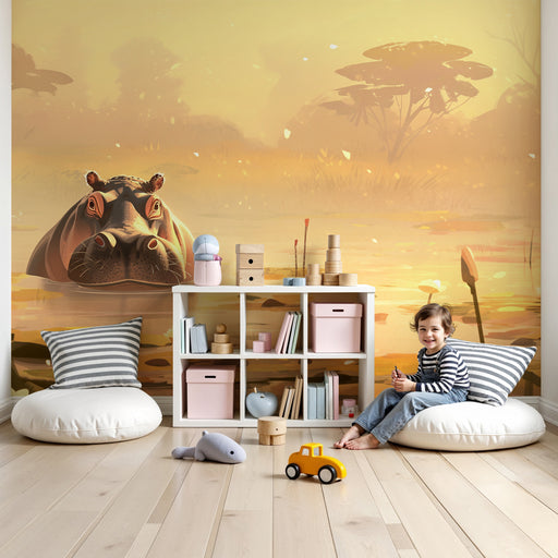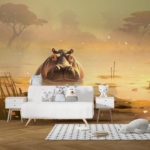 Показване на всички подробностиPapel de parede criança | Hipopótamo pacífico em uma paisagem aquática