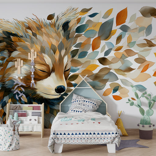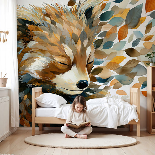 KidsWallДобавете малко магия в стаята на вашето дете с този тапет за деца, изобразяващ нежна лисица, обгърната от листа в блестящи цветове. Лисицата, споко...