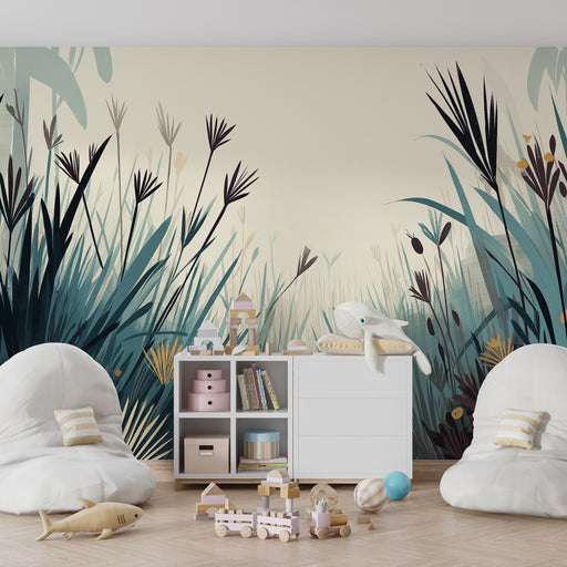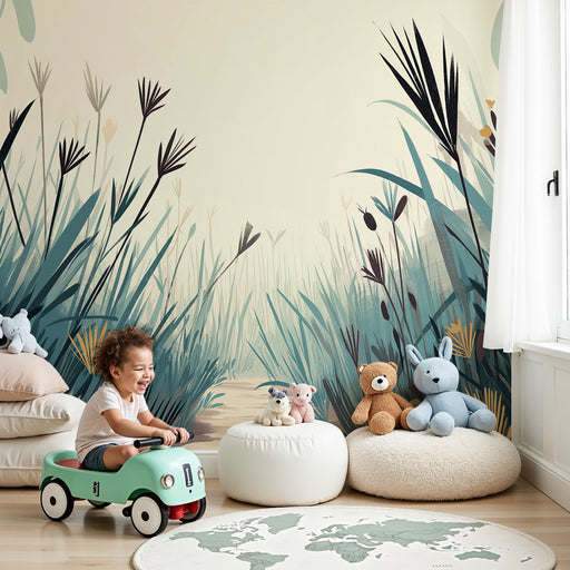 KidsWallПодарете на вашето дете пътешествие в сърцето на природата с тази тапет за деца, изобразяваща лукава лисица, която се промъква из гъста растителнос...