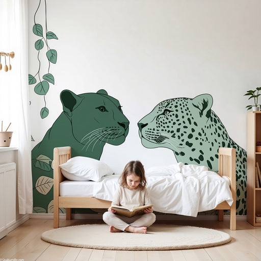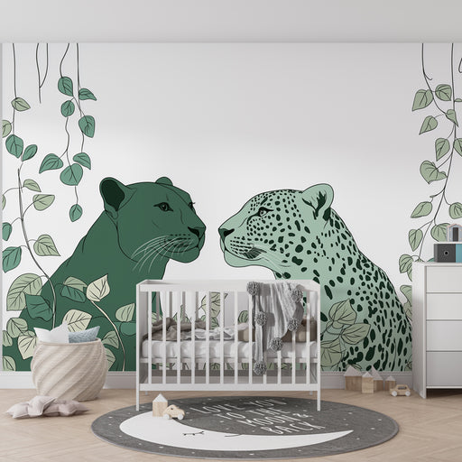 KidsWallПревърнете стаята на вашето дете в див рай с тази детска тапет, изобразяваща величествени хищници. Двама приятели, леопард и пантера, се изправят е...