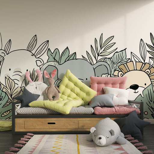 Показване на всички подробностиPapel de parede criança | Savana animal print com linhas delicadas