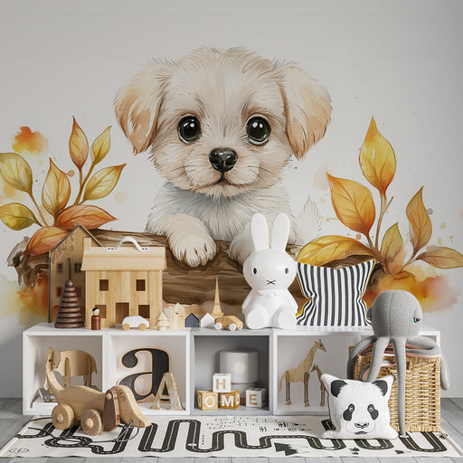 KidsWallПревърнете стаята на вашия бебе в уютно гнездо с тази тапет за бебе, изобразяващ сладък мечо, седящ по средата на оцветени листа. Този очарователен...