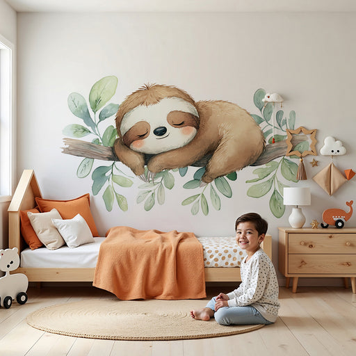 KidsWallДонесете допир на нежност и спокойствие в стаята на вашето дете с този тапет за деца, изобразяващ мил малък спящ леопард на клон. Този очарователен...