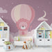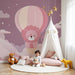 Papel de parede quarto bebê | Симпатичен лъв във въздушен балон сред розовите облаци