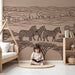Papel de parede criança | Safari desenhado com elefantes e leões