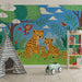 Преобразете стаята на вашите деца с този очарователен джунглен тапет, представящ мили животни. Този цветен дизайн включва леопарди, шаловлива маймуна и певча птица сред плътна растителност.