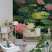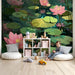 Превърнете стаята на вашето дете в оазис на мир и спокойствие с нашия тапет с лотосови цветя и лотуси. Този хармоничен дизайн представя нюанси на зелено и розово, изобразяващи спокоен езерен бряг, идеален за усмиряваща атмосфера.