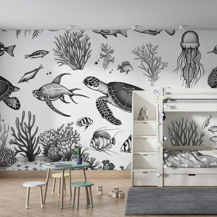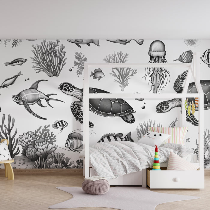 Детски тапет | Подводно приключение в черно и бяло