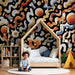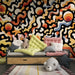 Преобразете стаята на вашето дете с нашия абстрактен ретро тапет и органични форми. Неговите вихрушки с топли тонове на червено, жълто и оранжево, разпръснати върху черен фон, предлагат игрив и художествен стил.