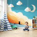 Поканете магията на нощта в стаята на вашето дете с този тапет за деца, който изобразява спокоен черен котарак, гледащ към луната. Нежните цветове на синьото небе и оранжевите облаци създават мечтателна и успокояваща атмосфера, идеална за подхранване на приключенски мечти.