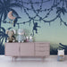 Силуетите на животните се открояват на фон от синьо и зелено, създавайки успокояваща и мистериозна атмосфера. Мащабните палми и деликатните детайли на лозите добавят допир на дива природа, превръщайки стаята в пространство, където всеки ден е ново приключение.