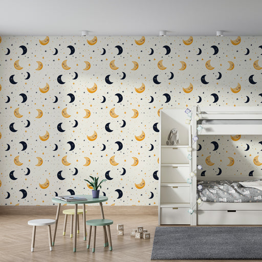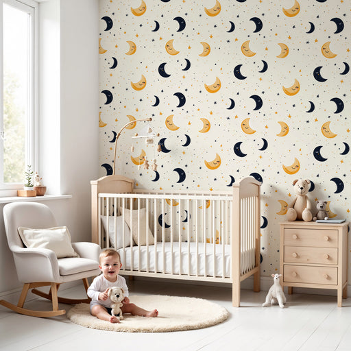 KidsWallПреобразете стаята на вашето дете в истински нощен свят с този очарователен тапет. Украсен с светещи лунни полумесеци и бляскави звезди върху топло...