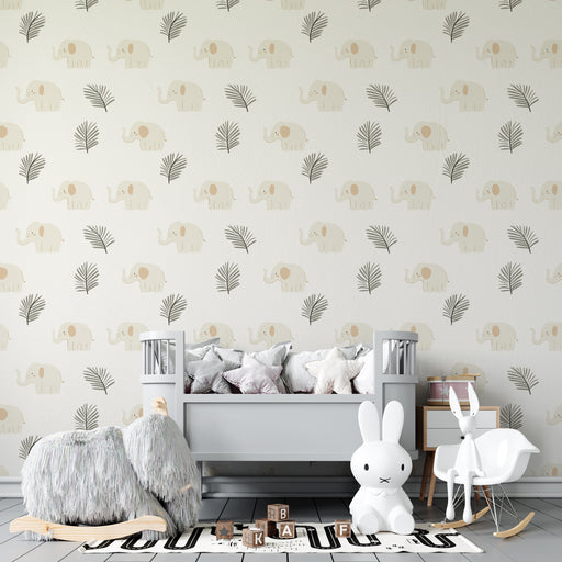 Papel de parede criança com padrões | Elefantes elegantes e folhagens bonitas