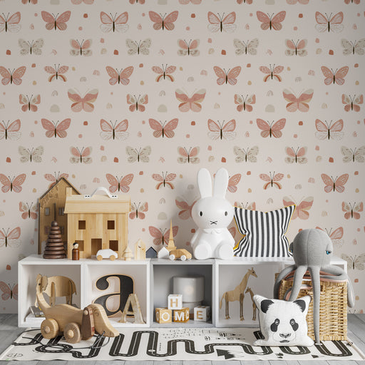 Детска стая за тапети с десени | Красиви пастелни пеперуди върху нежен фон