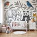 Отправете се на диво приключение с този тапет за детска стая, илюстриращ милите животни по средата на природата. Добродушен слон, весел панда, хитра лисица и цветни птици цъфтят сред нежни листа, създавайки вълшебна декорация.