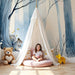 Превърнете стаята на вашето дете в мирно убежище с тази тапет за деца, изобразяващ любопитна катерица в гора, украсена със сняг. Погребете вашето дете в очарователна декорация, където величествени дървета в сини нюанси се издигат в спокойна и смирена атмосфера.