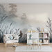 Деликатните нюанси на сиво и синьо създават нежна и мечтателна атмосфера, идеална за детска стая. Силуетите на растителността в далечината добавят допълнително загадъчие и спокойствие, превръщайки стаята в топло гнездо.