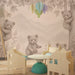 Вървете в нежен и успокояващ свят с този тапет за детска стая, изобразяващ очарователни мечета, които изследват своя природен живот. Всяко малко мече, шаловливо и любопитно, привлича вниманието си с очарователните си изрази, докато се катерят по дървета или се забавляват до пневматичния корен. Тази нежна и мечтателна илюстрация създава топла и уютна атмосфера.