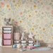 Преустройте стаята на вашето дете с този тапет за деца с успокояващи цветни мотиви. В нежна комбинация от рози, маргаритки и диви цветя, всяка деликатно изобразена детайлност призовава красотата на цъфтящ градински цвят. Пастелните нюанси на розово, жълто и зелено създават топла и уютна атмосфера.