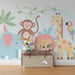 Превърнете стаята на вашето дете в истински цветен сафари с този тапет за деца, изобразяващ весела група джунгленски животни. Иконични фигури като мило слонче, усмихнат лъв, шаловлива маймуна и симпатична жирафа добавят магия и забавление към декора на стаята.